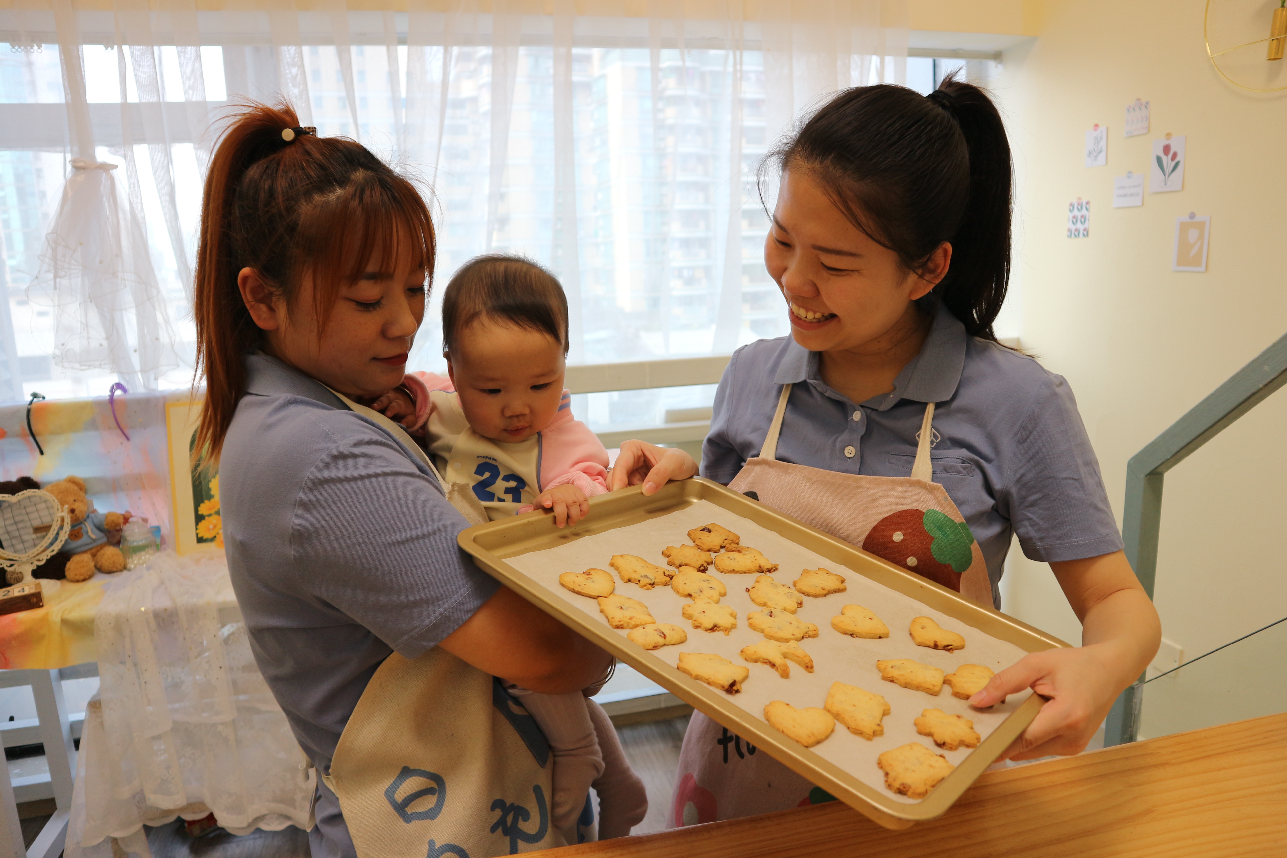 中鐵十六局廣州地鐵十號線一分部的女職工們則沉浸在「甜蜜」的氛圍中。分部組織女職工們開展了烹飪課程學習活動,享受製作蛋糕、餅乾,體驗烘焙的樂趣。平日在工作中雷厲風行的「鐵娘子」們,紛紛化身「甜點大師」,在烘焙老師的指導下漂亮地露了一手,填餡、抹奶油、裱花、點綴水果,一個個漂亮美味的奶油蛋糕相繼出爐。攪拌、塑型、烘烤,餅乾烤得恰到好處,為緊張的地鐵建設增添了「甜蜜」的味道。