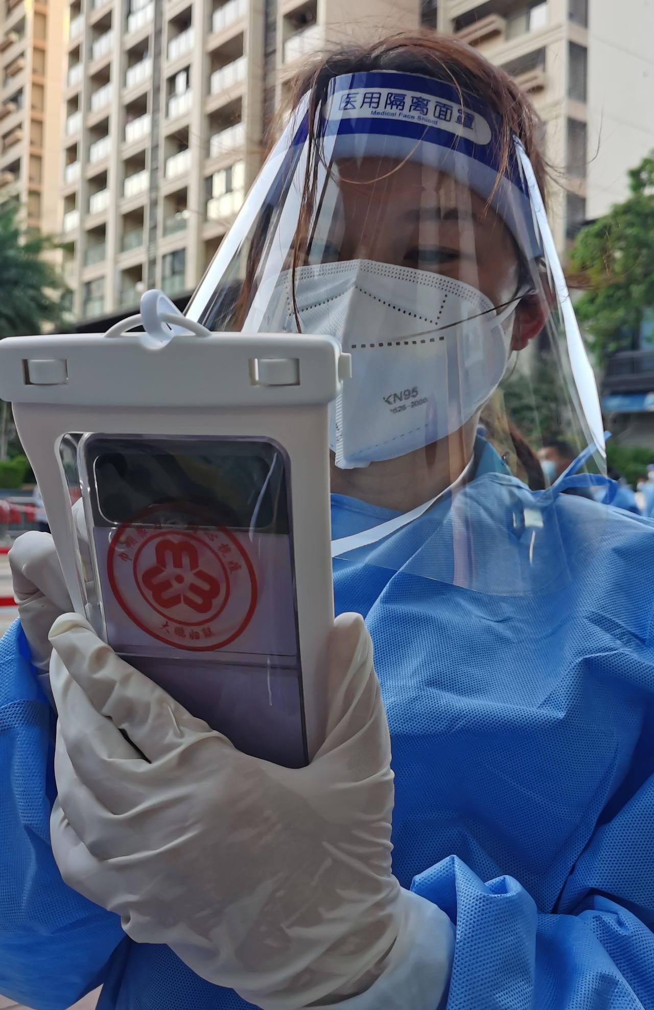 收到手機防護袋,大鵬所城南門核酸檢測點的負責人陳少玲直呼:「這個防疫物資,走心又給力!」原來,各核酸檢測點負責人員要經常接打電話,時刻關注防疫指揮部的最新消息以備統籌、協調檢測點位工作,手機暴露使用存在一定的交叉感染的風險,手機防護袋起到了有效隔離的作用,而且絲毫不影響使用功能。