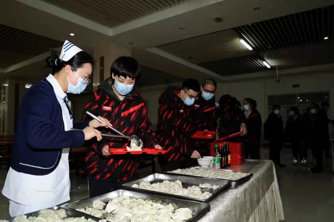 14日清晨,天還未亮,後勤部門以最快的速度將防疫、生活物資發放到隊員手中,為出征隊員做好充分保障。食堂準備了熱氣騰騰的餃子,為隊員們餞行。