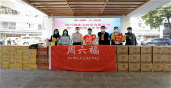 眾志成城抗疫情,愛心企業顯擔當。疫情防控的關鍵時刻,羅湖區工商聯會員企業周六福珠寶股份有限公司發揚「大愛羅湖」精神,主動踐行社會責任,向黃貝街道捐贈一批關愛物資,為抗擊疫情助力加油。作為羅湖的優秀企業代表,周六福始終不忘回饋社會,不遺餘力地履行社會責任,支持羅湖公益慈善事業的發展。本批關愛物資將在街道安排下分發給受疫情影響的居民和防疫工作人員。「作為羅湖的一份子,我們希望盡己所能,為居民獻上一點心意,為街道疫情防控工作貢獻綿薄之力。」周六福珠寶董事長李偉柱這樣說道。