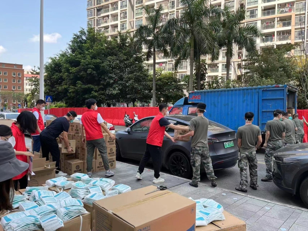 位於福光社區的越疆科技有限公司是桃源街道孵化成長的本土企業,2019年成立黨支部,是桃源街道兩新黨建的優秀示範企業,多次被評為先進基層黨組織。在全市停工停產通知發出的當晚,越疆科技主動聯繫桃源街道黨工委,報名參與疫情防控志願服務。南山區第八次黨代會代表、越疆科技董事長劉培超表示:「現在全市疫情防控壓力大,我們除了做好停工停產等配合工作外,也要積極承擔一份責任,需要我們的時候,我們隨時準備。」據了解,越疆科技自發組織了60人的志願者隊伍,每天派出10名員工前往福光社區支援防疫一線,主要負責防範區內的防疫物資分發、保障物資運送等工作,用實際行動展現兩新組織的責任 與擔當。