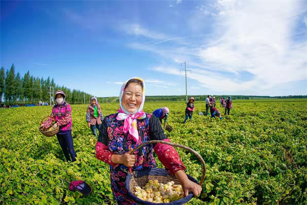 2021年,拜泉縣從挖掘農村庭院土地資源入手,全縣186個行政村全覆蓋,累計組建小院經濟合作社 349 個,小院經濟種植面積4.6 萬畝,養殖家禽 18 萬隻,帶動脫貧戶22198人,人均增收820元。