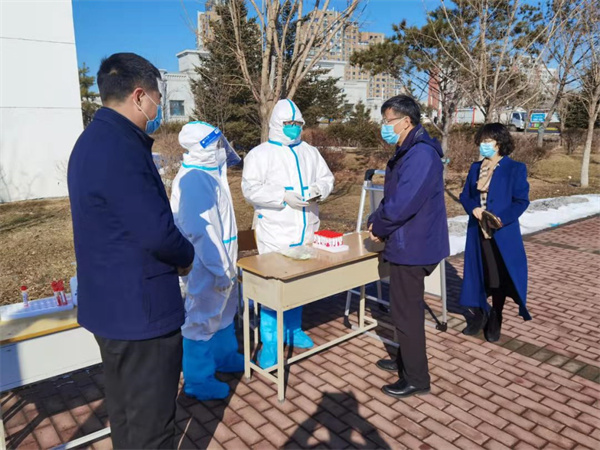 孫立軍每天帶隊深入學校江北校區食堂、學生宿舍、核酸檢測現場、環境消殺現場、線上教學現場等關鍵點位進行疫情防控督導檢查,慰問各單位住校工作教職工,發現並及時解決存在問題,全力保障教育教學各項工作順利開展。(裴振萍 郝儷娜 王琳)