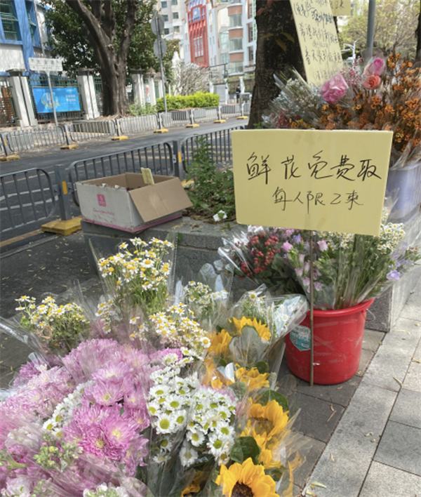 據花店工作人員表示,這些花是前幾天從昆明訂的,現在賣不出去,不如送給大家,希望大家看點鮮花心情會好一點。花店老闆也說,「只是想把這個簡單的愛心傳遞下去,如果居民感受到溫暖的話,我們的初衷就達到了。」深圳,有送春天的人,也有溫暖生活下的「拾花人」。