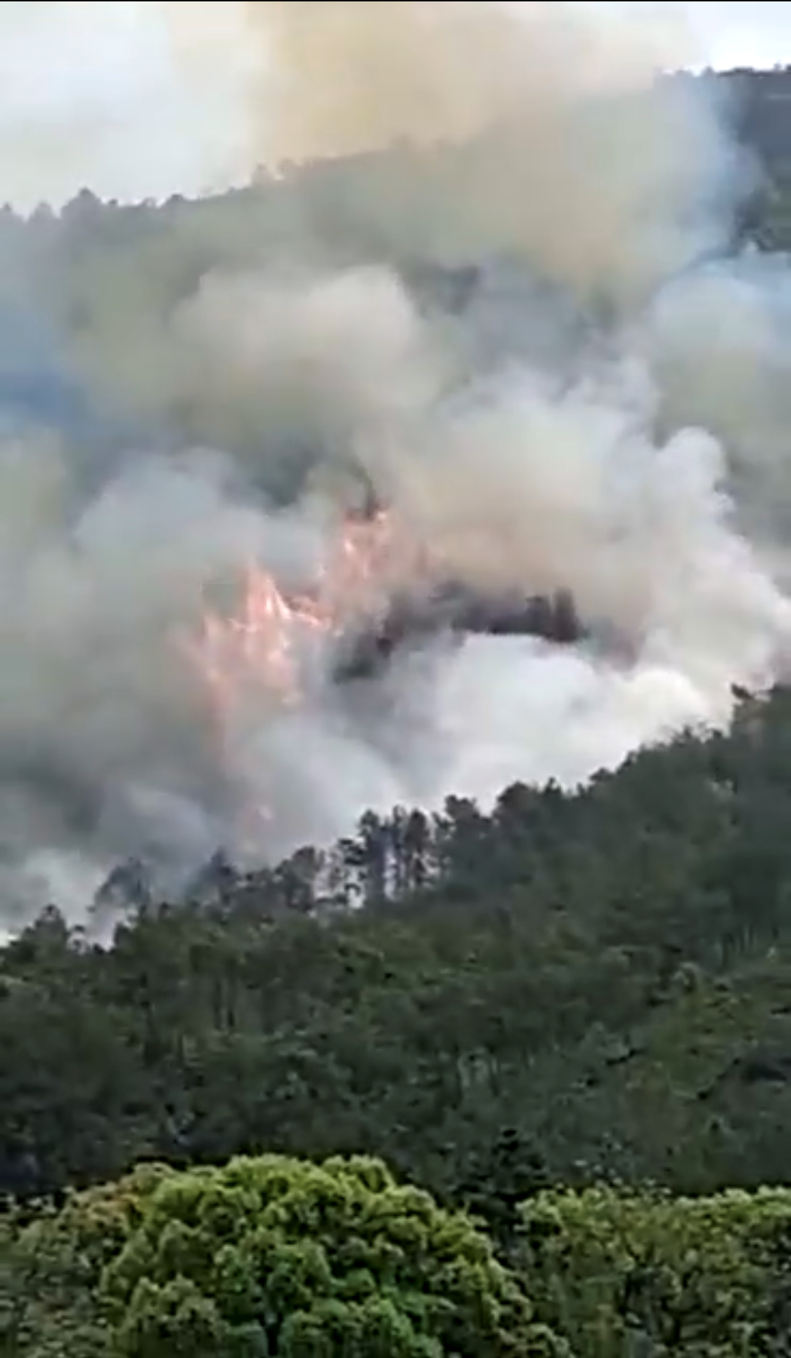 疑似東航客機墜毀後引發的山火。 網絡視頻截圖