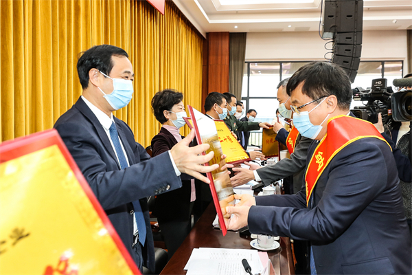 劉鋒、胡雪梅等領導為2021年度工業企業納税20強頒發獎牌