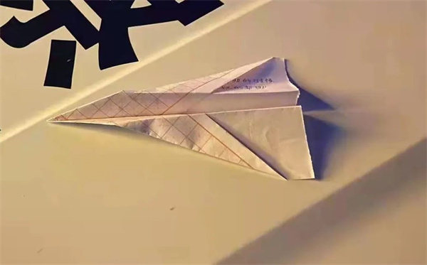 二人錯愕之際,只見孩子飛奔回屋內,過了一會兒,一個物件從孩子的窗口飛出,緩緩落下,定睛一看,原來是一個紙飛機!二人打開紙飛機,上面歪歪扭扭寫了兩行字: