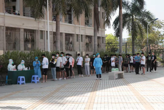 在一線抗疫大軍中,有一支特殊的隊伍已連續奮戰多日,那就是由港籍珠寶商人郭昭軍帶領的漳州市青年志願者協會。在核酸檢測現場,他和他的隊員們身穿紅馬甲,化身為引導員、秩序員,協助核酸採樣工作迅速完成。在封控區和管控區,他們是守衛員、運送員,將物資配送員送來的物品進行登記、消毒,再由小區內身着防護服的物業人員、志願者為居民送貨上門。
