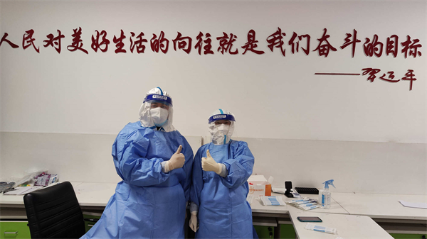 危難之時,平凡成為英雄。平房區二四二醫院、百利口腔門診醫護,第八十四中學、第十八職業高級中學校醫聞令而動,披掛上陣,奔赴友協街道區域核酸檢測一線。醫護人員身着厚厚防護服,戴着口罩與防護鏡,「全副武裝」的她們似一道道白色閃電,「逆行奉獻」,12小時不停檢測,額頭上被勒出的深深印痕,那卻是最「美」的容顏,為人民群眾築起了一道安全的防護之牆,他們是春天派來的「天使」,用身軀驅趕陰霾。