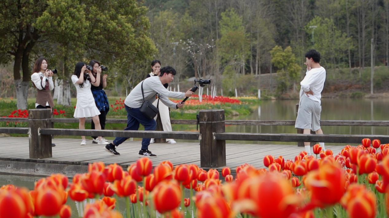 近日,江西軟件職業技術大學新媒體學院的專職教師雷娜、趙飛燕與江西宇航猿文化傳媒公司的技術團隊帶領學生對「南昌市第五屆鬱金香花展」展開花展創意短視頻項目實踐。