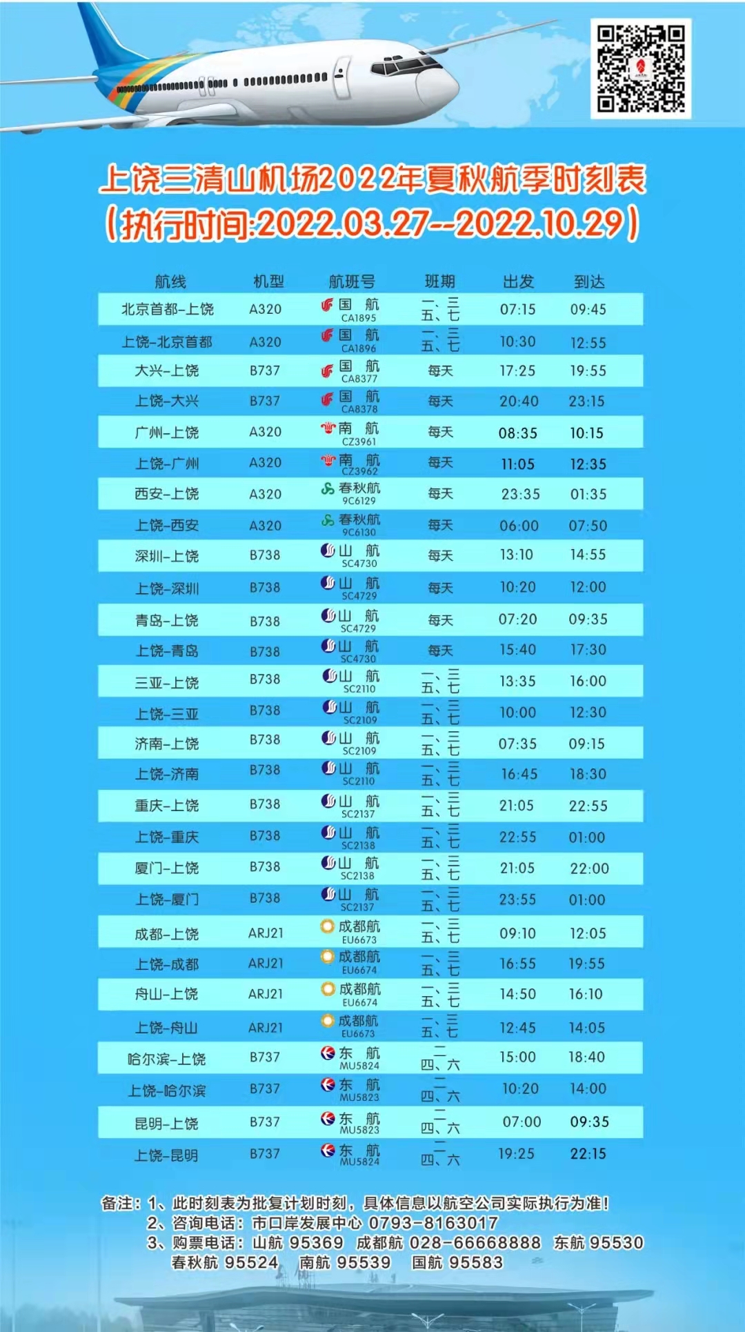 3月25日,記者從上饒市政府新聞發佈會上獲悉,按照民航慣例,每年的3月底和10月底各要進行一次民航換季,對各條航線、執飛機型、航班時刻進行優化調整。從3月27日起全國民航將進入夏秋航季,屆時全國各機場執飛的航線、時刻都會有相應的調整。
