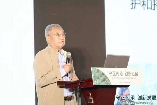 論壇以現場講解與遠端視頻連線相結合的方式進行。著名植物學家、中科院昆明植物研究所研究員裴盛基在現場作《民族植物學視野中的森林茶園文化》的專題報告。他認為,森林茶園在中國不僅是一種業態,更有著深厚的文化內涵;森林茶園文化是中國茶文化的源頭。裴盛基說,“有關森林中茶樹種植、採收、加工、管理和保護的所有知識,都是森林茶園文化的研究內容,研究森林茶園文化的目的是守正創新,實現森林茶園的可持續發展。”他還從森林茶園與民族植物學的關係以及森林茶園文化對醫藥、飲食、休閒養身、宗教等文化的影響,運用他多年的研究成果作了印證闡釋。