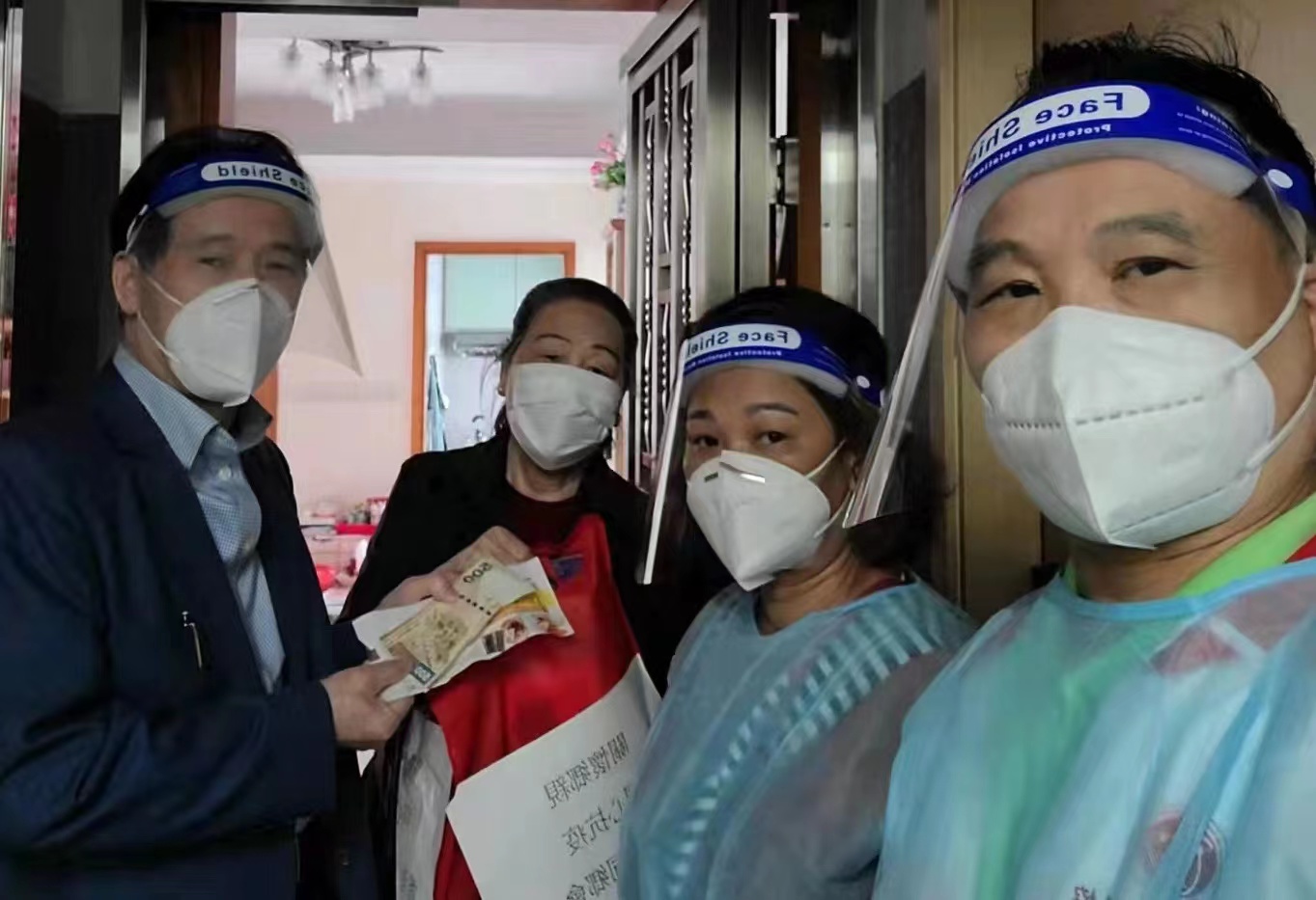 近日,家住香港九龍旺角區的陳黃彩婆婆迎來了3位鄉親的到訪。這3位鄉親正是香港大鵬同鄉會會長何志強、副會長鄒運通和關愛組會員。92歲的陳黃彩婆婆從深圳大鵬移居香港多年,獨自一人與保姆居住,同鄉會為她送來了防疫物資、水果和慰問金,讓她備感溫暖。