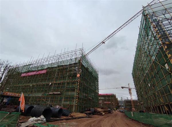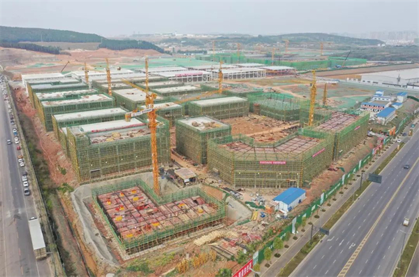 據了解,聯東U谷是綿陽涪城區新引進的又一個平台型項目,未來這裏將聚集一批新型顯示、電子製造等高端裝備製造企業,助力涪城千億級先進制造業產業集群全面起勢。按照施工計劃,聯東U谷項目一期將新建廠房33棟。本月底,30棟廠房就將封頂,另外3棟因為圖紙調整的原因,計劃於下月底封頂,目前一期建設已完成總體任務的45%。「為了保證項目順利推進,資金採取專項專用予以保障;同時也投入了大量人力機械保證進度,高峰時人數接近500人,從開工到現在平均人數也在300人左右。」富誠集團項目現場代表楊傑介紹到。