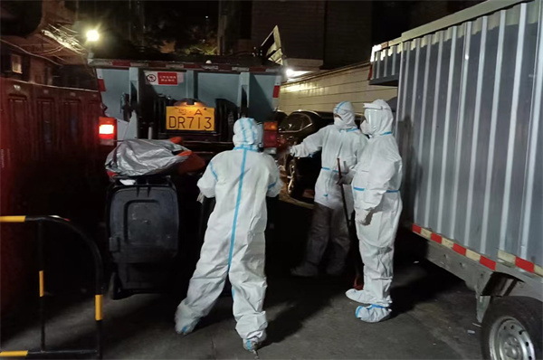 這是袁燕第二次參加管控區域衛生保障工作。這次管控區域範圍廣、保潔面積大,居民的生活垃圾相比往常大量增加,居家隔離的第二天,垃圾量激增。袁燕和隊友留在了臨時管控區域負責住戶的生活垃圾清運和地面清掃、消毒,每天清晨6點開始工作,將收集的垃圾裝桶、轉運並統一處理,確保日產日清,保持環境乾淨衛生。