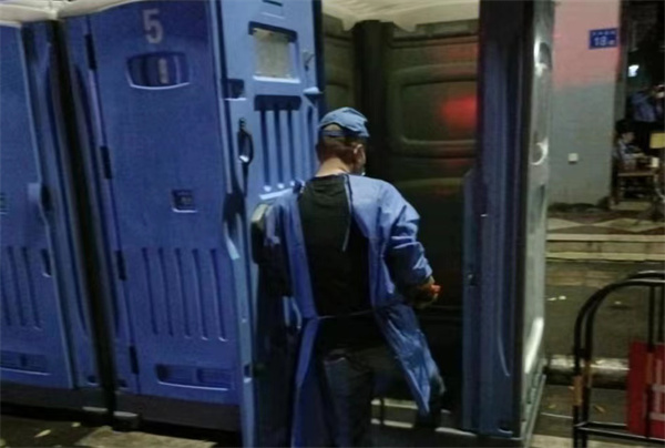 「你好,現五華直街正進行全員核酸檢測,時間緊急,人數眾多,我們需要移動公廁解決市民群眾的如廁需求。」當晚10時起,花都區環衛所清疏志願服務隊收到緊急通知後,出動5名隊員,在五華直街放置6座移動公廁,並安排專職保潔人員,嚴格按照疫情防控要求,對移動廁所進行24小時不間斷公廁保潔、糞便清運以及周邊場地灑水沖洗和消毒消殺等綜合保障工作,保障管控區域的如廁需求。
