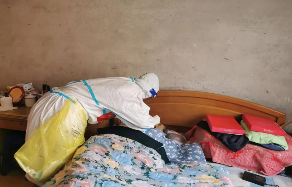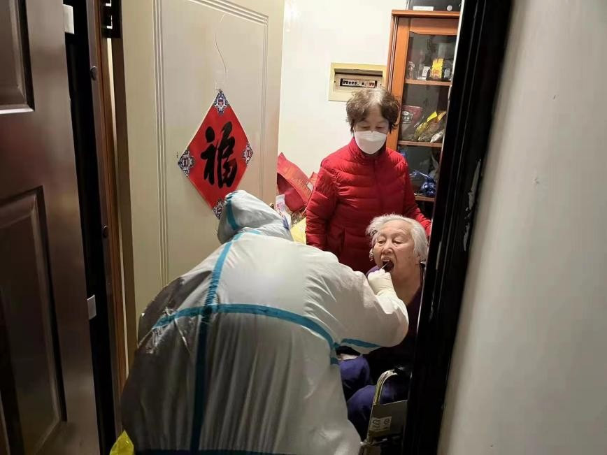 她一天爬了1200多級台階。姚艷春是和平區新華社區衛生服務中心的護士,今年已經54歲了,在全員核酸檢測工作中,一直在一線採樣。轄區裏有一些行動不便的老人、殘疾人,產婦等,需要上門採樣,姚艷春第一個報了名,她說:「我還年輕,我體力好,爬樓的活兒絕對能勝任!」她穿上厚厚的防護服,腰間掛上備品袋,化身為流動採樣台,有一些老小區沒有電梯,她就挨家挨戶爬樓,半天時間,爬了1200多級台階。