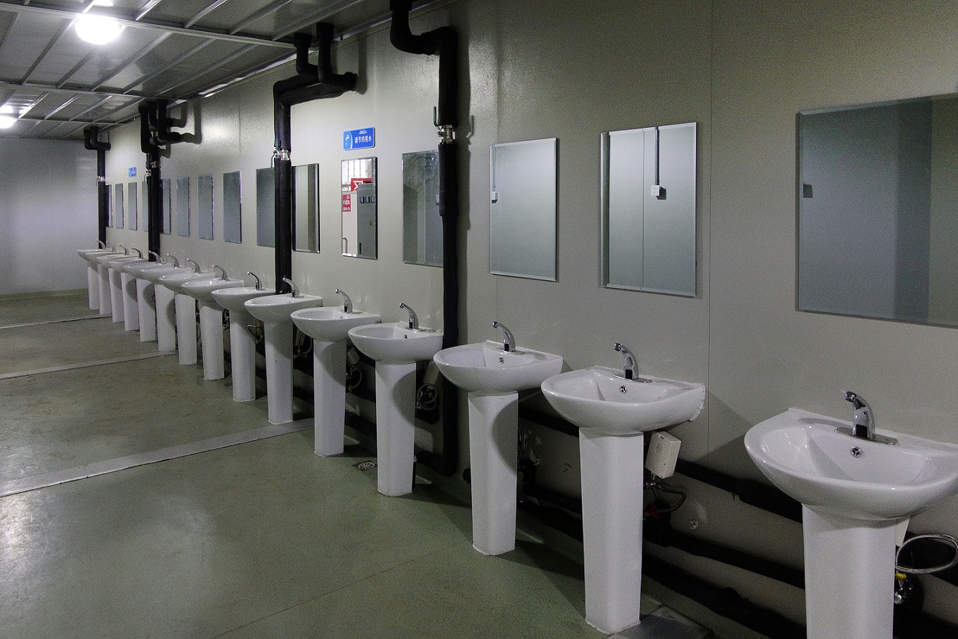 據介紹,方艙醫院應急工程總建築面積約5.1萬平方米,分兩期改造建設,一期建築面積3.1萬平方米,可提供1000張治療床位及1.3萬平方米的醫療物資倉庫;二期建築面積2萬平方米,改造完成後可再提供1000張治療床位。方艙醫院改造是按照「三區兩通道」原則,對方艙醫院按照清潔區、半清潔區、污染區進行功能分區。工程於3月20日晚間正式啟動,目前一期工程已全部完成,達到交付條件,其中部分提前完工的區域已與方艙接收單位市六院先行啟動工作對接,配合進行醫療物資轉運、醫療設備及醫護人員配備等準備工作,為正式投入接診使用爭取了時間。方艙改造二期工程目前施工進展順利。