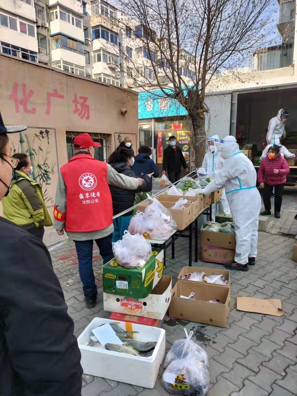 3月30日下午,瀋陽市瀋河區萬科春河裏南園區的蘇宇陽過了一下「購物癮」。當天,在瀋河區商務局、風雨壇街道和萬科物業的組織配合下,盒馬生鮮超市佳兆業店調配水果、蔬菜、肉蛋奶等生活必需品,萬科春河裏南園區內集中售賣,價格和新鮮程度與網絡平台、線下店鋪無異,讓小區居民在非必要不外出的原則下採購新鮮菜品,彌補了線上爆單、缺貨等問題。同時,按照防疫要求,街道、社區、物業共同做好秩序維護,實現了居民有序購物。