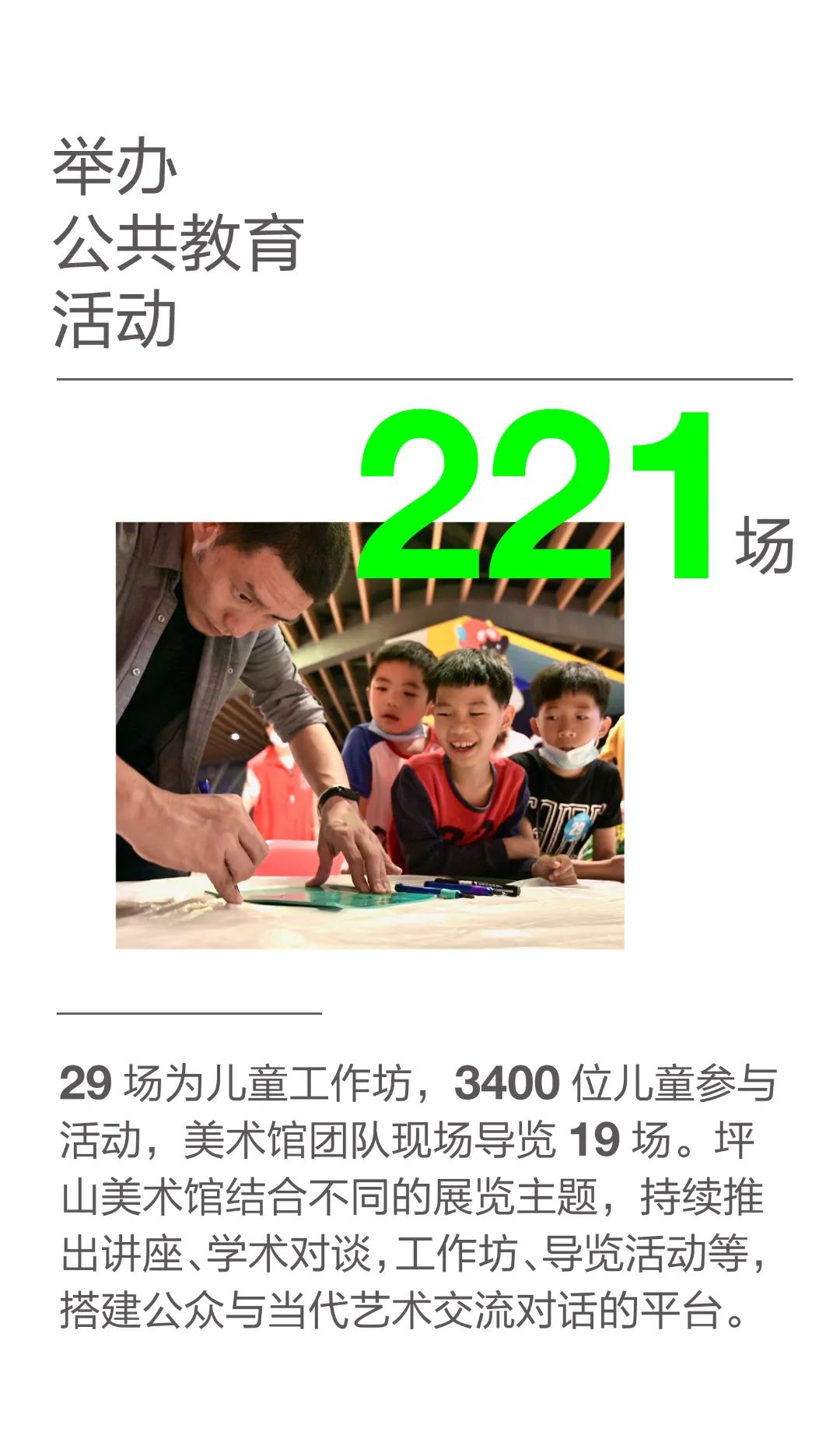 「新生與共振」既是坪山美術館三周年慶的主題詞,也是對於機構未來的冀望。在坪山美術館三周歲生日之際,將通過一串串數字細數這三年流淌的時光。