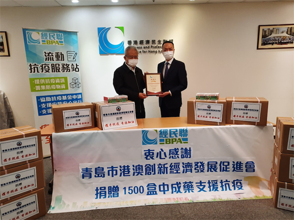 香港第五波疫情仍然嚴峻,持續牽動著內地和香港各界人士的心。3月31日,青島市港澳創新經濟發展促進會(以下簡稱青港澳創促會)向香港經濟民生聯盟(以下簡稱經民聯)捐贈1500盒抗疫良藥——蓮花清瘟膠囊,積極支援香港社區街坊防疫抗疫。