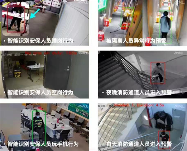 該酒店的安保人員介紹,通過愛莫科技研發的隔離酒店智能風險管控系統,能對隔離監控視頻進行智能識別分析。當工作人員軌跡偏離兩點一線超時、醫學觀察人員擅自出入房間、未着防護服工作人員進入高風險區、安保人員擅自離崗睡崗時,系統可以即時發現,主動預警各類高風險行為,並能實時自動通知值班人員處理,將風險控制在萌芽狀態,阻止疫情擴散。