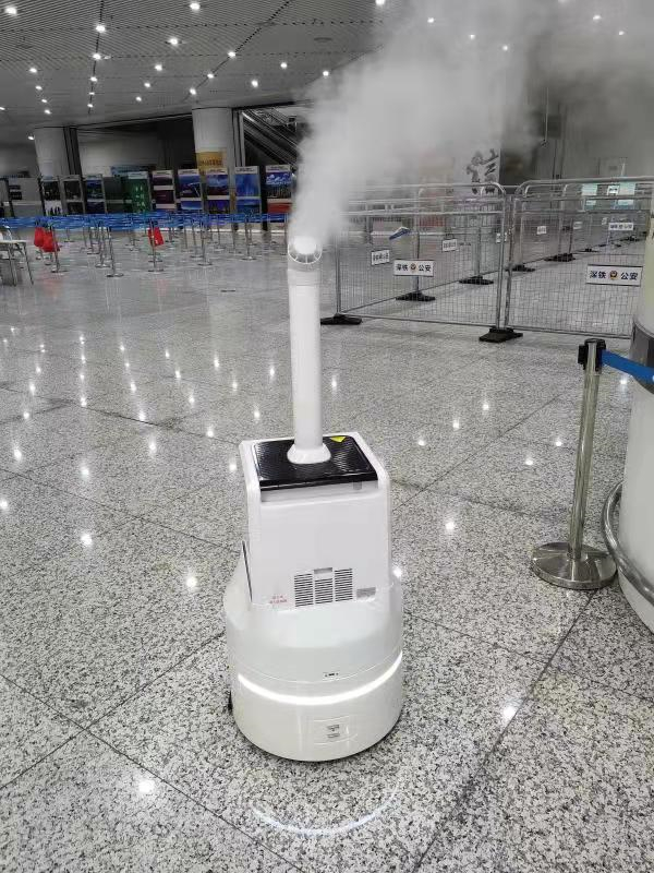 在南山區一些公共場所,還有能一邊行走一邊噴霧的機械人。噴霧落到地面,不見潮濕,也不打滑,這便是中智衛安光觸媒空氣消毒機械人。中智衛安機械人技術有限公司相關負責人介紹,這種消毒機械人實現了消毒過程量化管理。機械人全程智能化操作,實行人機分離,保障了醫護人員安全;同時,智能消毒機械人還能自動根據消毒面積計算工作時間,自動圍繞待消毒目標進行消毒。