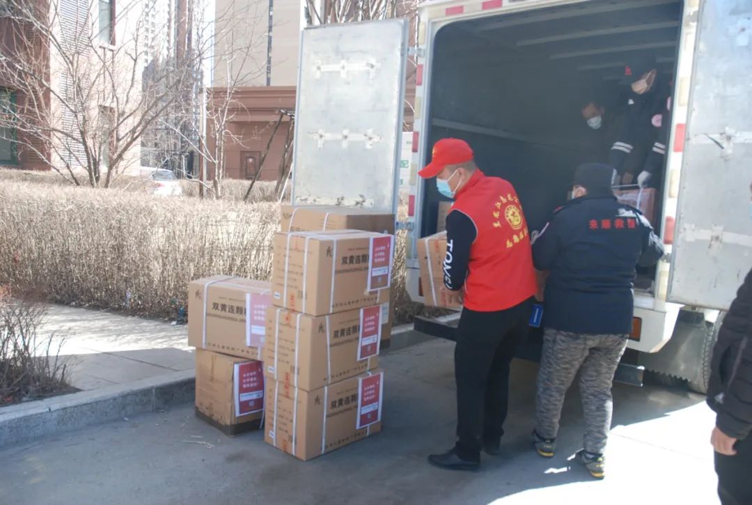 哈爾濱市來順公益志願服務中心工作人員接收捐贈抗疫物資