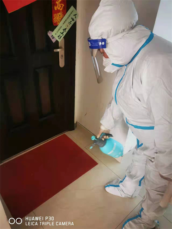 消殺是疫情防控的重要環節,保潔隊長戰金萍主動去打掃消殺有密接的單元,保潔隊成員們天蒙蒙亮就要到崗。樓道、電梯、按鍵、門禁開關,只要是業主們可能會觸碰的地方都會認真仔細的消殺,公共區域更是加大消殺頻次。