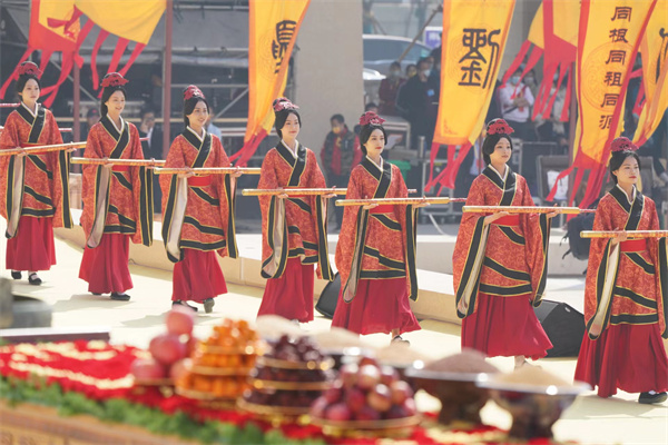 大典共有盛世禮炮、敬獻花籃、淨手上香、行施拜禮、恭讀拜文、高唱頌歌、樂舞敬拜、祈福中華、天地人和等九項儀程。九項儀程前,始祖軒轅黃帝塑像落成揭幕。