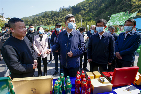 朱洪平介紹,為推進黃山茶產業高質量發展,黃山市先後組織駐村工作隊、駐企服務隊、金融“村官”、科技特派員和黨員幹部志願者近5000人次,深入茶區、茶企,指導茶農開展茶園管理,全面落實茶園病蟲害綠色防控,幫助茶企檢修加工設備、落實茶葉收購資金、分析研判市場行情,力促今年春茶生產提質增效、茶農穩定增收。