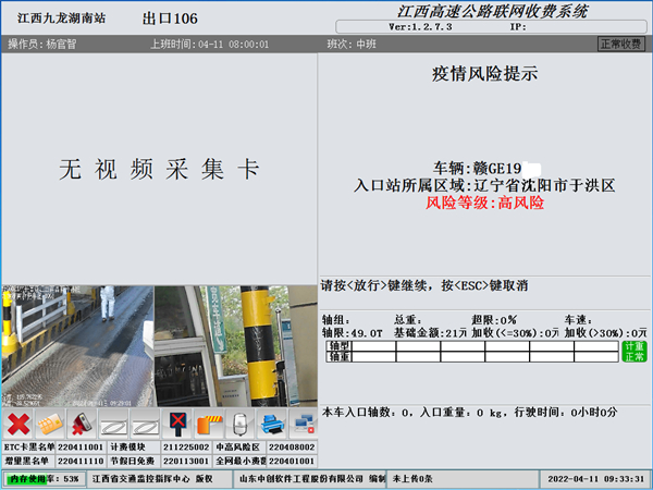 為有效監測全國中高風險地區駛入江西省車輛,協助、引導收費站相關人員及疫情防控檢測人員快速便攜完成防疫相關工作,江西省交通監控指揮中心在廳疫情防控指揮部的指導下,積極作為,快速響應,開展江西省高速公路跨區域車輛防疫監測子系統研發工作。
