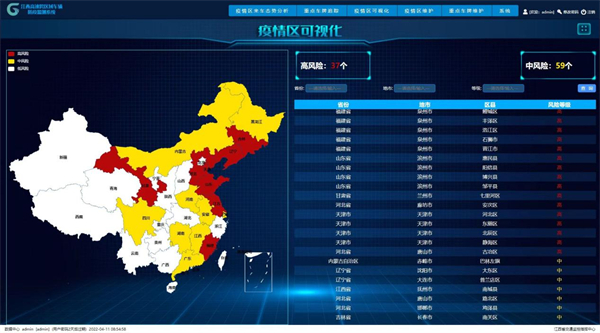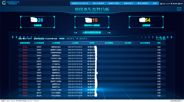 江西省高速公路跨區域車輛防疫監測系統,初步實現了中高風險地區來車態勢分析、重點車牌追蹤、中高風險區可視化、中高風險區維護、重點車牌維護等五大功能模塊,以期提前發出預警,最大限度減少、降低人員與中高風險地區來車的接觸。