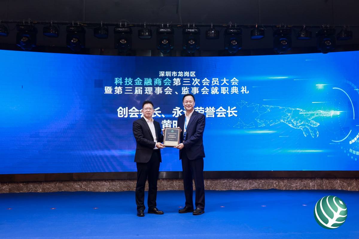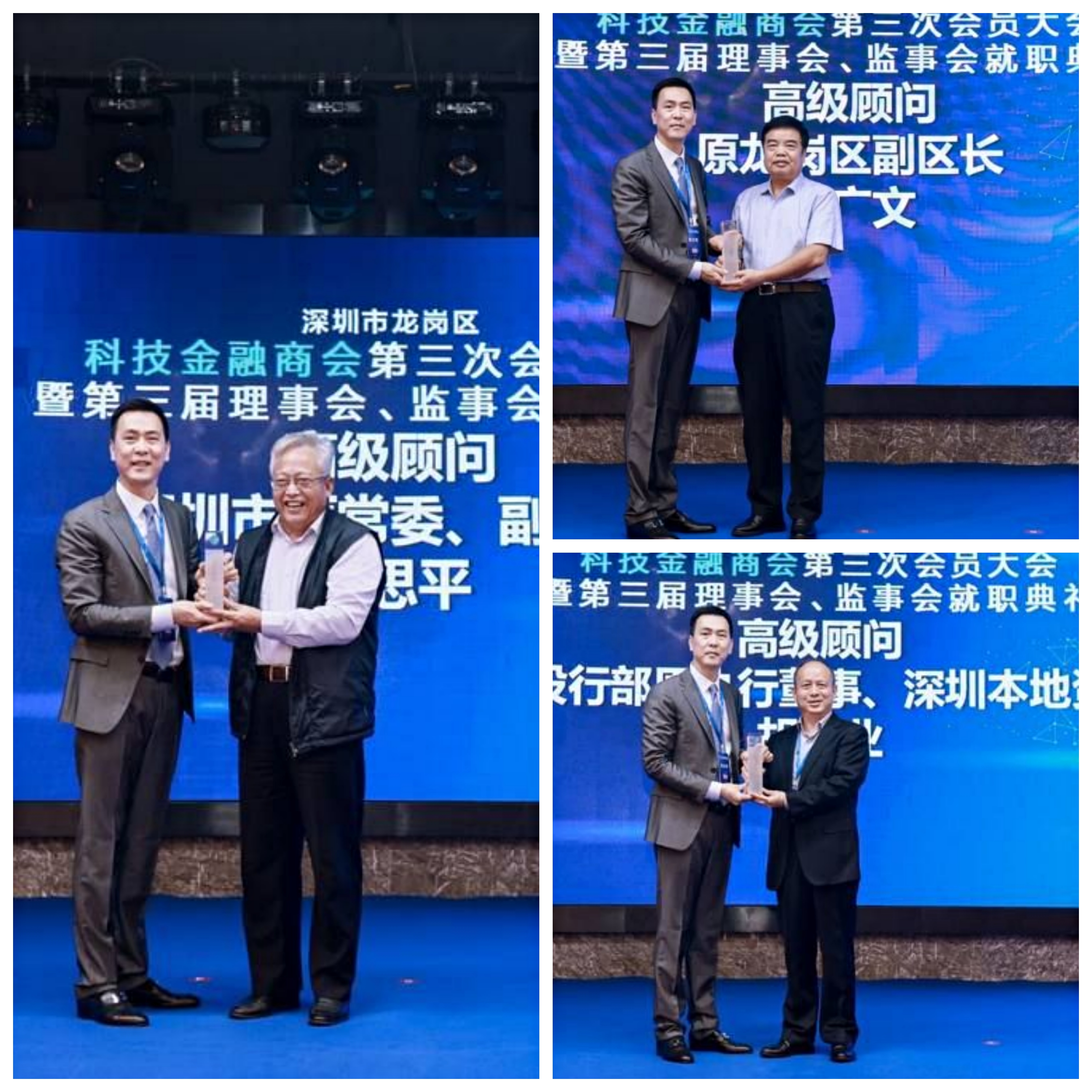 與會嘉賓為龍崗區科技金融商會第三屆理事會、監事會成員、商會會員、高級顧問及商會創會會長、永遠榮譽會長授牌。商會會員現場捐資助力商會發展。