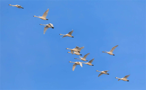 大天鵝是國家二級保護鳥類、全球易危物種,是世界上飛的最高的鳥類之一,最高飛行高度可達9000米以上,能飛越世界屋脊珠穆朗瑪峰。七星河濕地是大天鵝遷徙途中的一次中轉、「歇腳」,補充能量後繼續北遷到繁殖地。