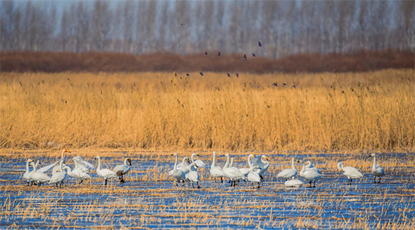 值得一提的是,在今年的春季候鳥監測中,七星河保護區工作人員發現30多隻大天鵝在淺水區嬉戲覓食。這是近年來七星河保護區首次監測到如此大規模的天鵝集群。