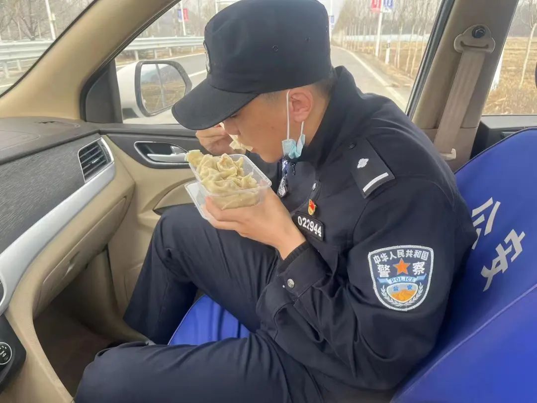 「這頓餃子比過年的餃子都好吃,雖然這些天在卡點執勤特別累,但是有家人們的理解和支持,心裏很溫暖,幹勁兒更足了,我們一定會打贏這場疫情防控阻擊戰!」哈爾濱市公安局尚志市局民警諸葛福鑫在執勤車裏吃着熱氣騰騰的餃子激動地說。