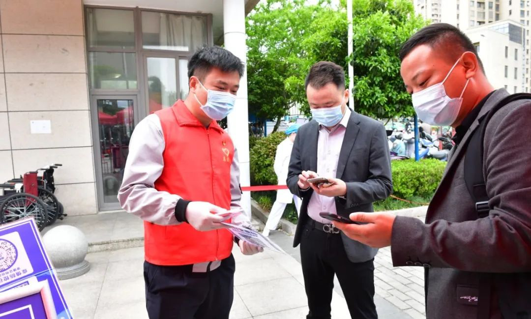 「您好,請您掃一下安康碼和行程碼再進入院區。」4月15日上午,在安醫大附屬巢湖醫院大門入口處,黨員志願者潘德虎佩戴黨徽、身着志願者紅馬甲,提醒每一位準備進入醫院的患者及家屬掃碼,驗碼後發放通行卡。