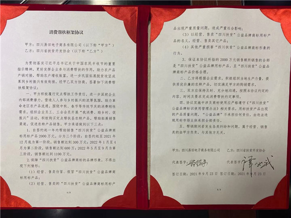 簽約四川省脫貧地區農產品消費幫扶任務2000萬元以及重慶甘肅等