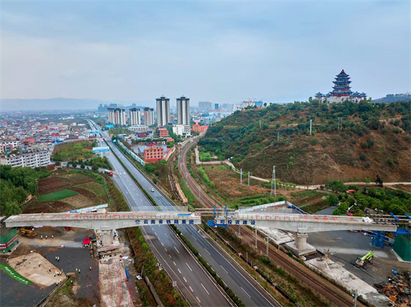 頂圖:祥雲財富鐵路專用線茨坪村特大橋是國內首個跨鐵路公路的雙轉體橋。(祥雲縣融媒體中心供圖)