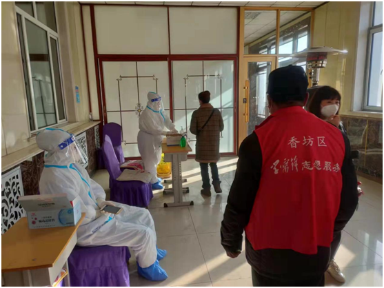 在抗擊疫情的關鍵時期,幸福鎮14個核酸檢測點馬力全開,18支新時代文明實踐志願服務隊聞令而動、聽令而行,大量「志願紅」一呼百應、前來支援,積極主動開展志願服務,每天為居家隔離人員配送生活物資、清理生活垃圾、做好消殺工作,為不方便出門做核酸的老弱病殘孕提供上門核酸檢測服務,為幸福鎮疫情防控工作貢獻志願者力量。