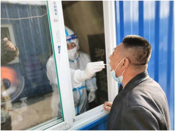 由於需核酸檢測的群眾多,而檢測的醫護人員較少,幸福鎮的村醫們臨危受命,積極加入到核酸採樣隊伍中。他們的身體一整天包裹在防護服中,橡膠手套里。摘下手套,雙手冰冷且被泡到泛白髮皺;摘下護目鏡,摘掉口罩,臉上被勒出一道道深色的印記。是他們用自己的肩膀,挑起了重擔,把幸福鎮疫情防控網織得嚴實、緊密。