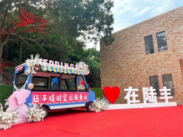 此次婚禮的舉辦地金廂銀灘對於新娘劉思瑋和新郎楊劍銳而言有着特別的意義。「我們的愛情故事就是從這裏開始的,這是我們第一次見面的地點。隨着鄉村振興示範帶建設的加快,過去鮮為人知的金廂銀灘已成為小有名氣的網紅打卡點,我看到報名信息後就立刻決定參加,這裏見證了陸豐鄉村振興的大變化,也見證了我們的愛情,特別有意義!」楊劍銳難掩喜悅之情。