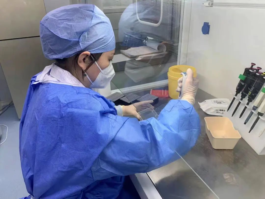 作為離病毒最近的人,她更要做好自我防護,防止檢測過程中出現感染。每次身着密不透風的三級防護服進入負壓實驗室提取核酸至少需要4個小時,最長時間超過10個小時。高風險、高強度、高壓力的檢測工作,對眼力、腦力、體力都是極大的考驗。