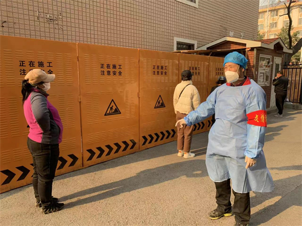 「您好,請出示一下小區出入證。」「您好,請先掃描下這裏的健康碼及行程碼。」「大姐,我給您量一下體溫。」……57歲的姜安是參與此次防疫志願服務的個體經營戶之一,他經營一家建材商店,疫情發生後,他就停業參與到社區疫情防控工作,小區卡口站崗執勤、樓道單元日常消殺、區域核酸檢測現場都有他忙碌的身影,每天連續工作平均10個小時,步數高達2萬步,他用實際行動為社會貢獻自己的力量。