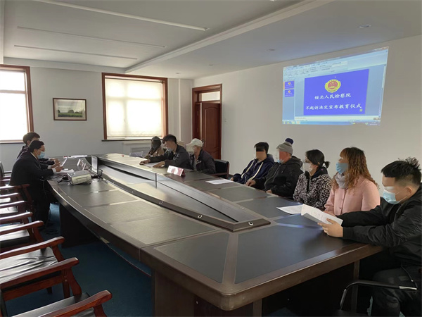 綏北院未檢部門對5名涉罪未成年人擬不起訴案件召開了不公開聽證會。受邀人民監督員、公安偵查人員、未成年人法定代理人、辯護人、被害人等10餘人參加此次聽證會。會上未檢部門辦案檢察官對本起案件的案情、社會調查情況、社會危害性及再犯風險的心理測評狀況進行說明和闡述。