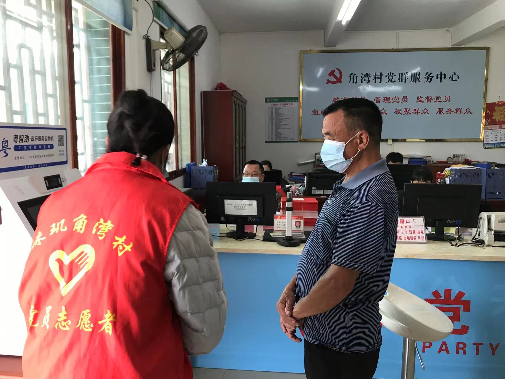 南雄市珠璣鎮角灣村黨群服務中心,志願者正在一對一指導老人操作應用