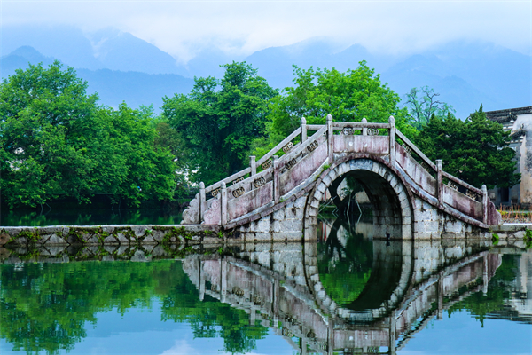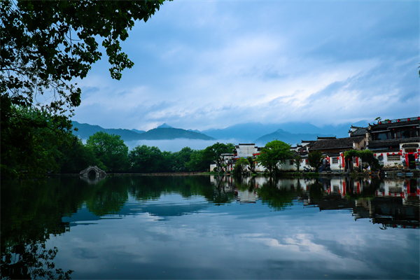 皖南黟縣宏村,古稱“弘”村,位於黃山西南麓。