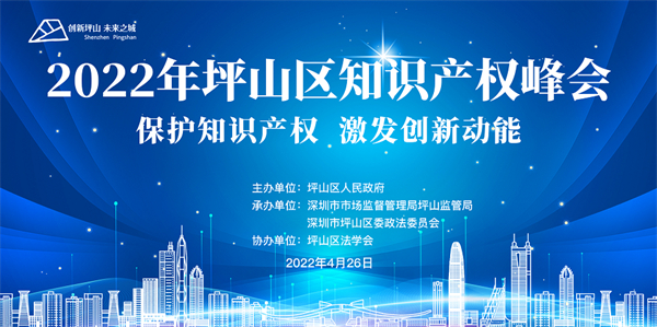 4月26日下午,2022深圳市坪山區知識產權峰會以線上線下相結合的方式成功舉辦,峰會主題為「保護知識產權 激發創新動能」。深圳市市場監督管理局黨組成員、市食品藥品安全總監王利峰,坪山區委常委、常務副區長袁虎勇,副區長金良富等出席峰會,廣東省知識產權保護中心副主任謝紅參加線上致辭,區知識產權聯席會議成員單位、區重點企業代表、媒體代表等40餘人參加。