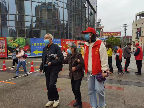 4月22日,該縣在縣城29個社區(村)全面啟動第一輪區域核酸檢測。全縣各部門單位的黨員志願者聞令而動,天剛亮就有序前往各個服務點報到:張貼採集流程圖、檢測注意事項等告知圖,組織引導受檢人員安全有序檢測,幫助老年群體手機預約.....。該縣農經站的黃范騫早上7點不到,就趕到了栗山社區核酸檢測點現場。「穿上志願者服裝的那一刻,感覺自己做的一切都很神聖,只要是我力所能及的事情,我都會去做。讓我們一起努力,早日戰勝疫情。」正是有了黃范騫這樣的黨員志願者的迎難而上,全縣第一輪核酸檢測圓滿完成。